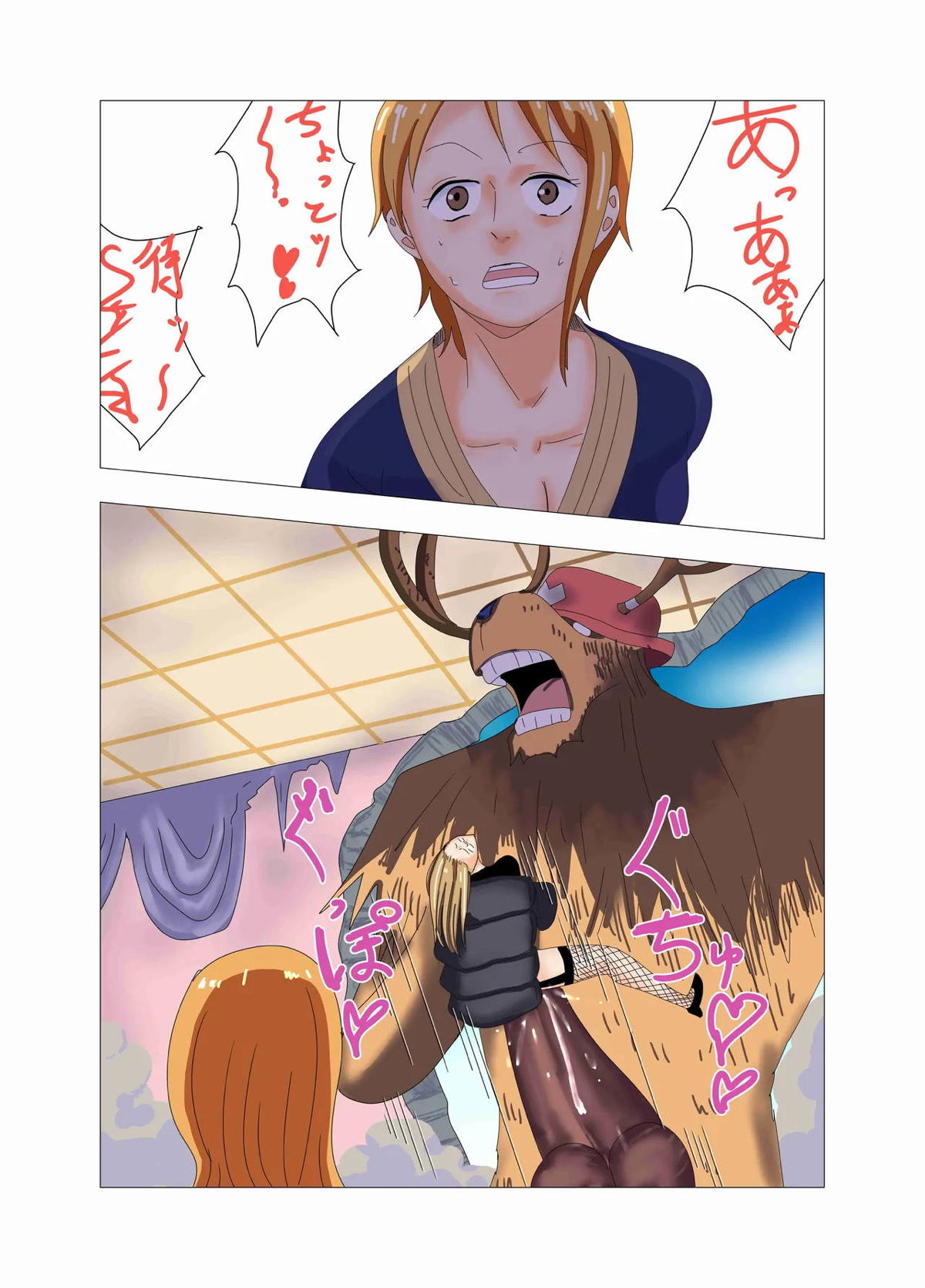 ナミがふたなりビビにバックで犯されてボテ腹になるまで中出しされちゃう♡ 10.15 19:00 ONE PIECE ナミネフェルタリ・ビビ TEKKINPAPA CG集アヘ顔かわいいトロ顔バックふたなりボテ腹レズ中出し巨乳汗だく連続